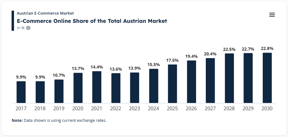 For retailers and platforms entering the Austrian market in 2026, the implication is straightforward: e-commerce is becoming one of the core components of retail strategy.