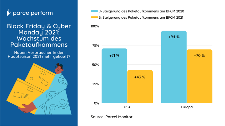 Parcel Perform: Wachstum des Paketvolumens an Black Friday und Cyber Monday (BFCM) in Europa und den USA um mehr als 20 % im Jahr 2021 gesunken