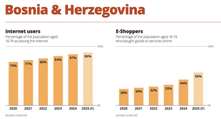 The European E-commerce Report 2025 recognized Bosnia and Herzegovina as one of the most dynamic markets in Eastern Europe, alongside Ukraine, thanks to accelerated digital recovery and improved data infrastructure. That’s a big deal for a country with a population of just over 3 million people.
