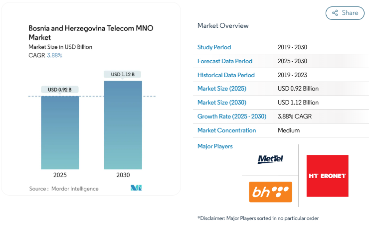 The e-commerce market in Bosnia and Herzegovina is estimated to be worth around 627.3 million euros by the end of 2024. And it’s not stopping there — the market is projected to grow at around 3.88% between 2025-2030, reaching a volume of $1.12 billion in 2030. That’s a solid growth curve for such a compact market.