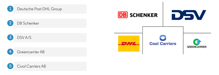 The top companies in Sweden’s freight and logistics market are Deutsche Post DHL Group, DB Schenker, DSV A/S, Greencarrier AB, and Cool Carriers AB. These companies are known for their extensive networks, reliable service, and innovative approaches to logistics management.
