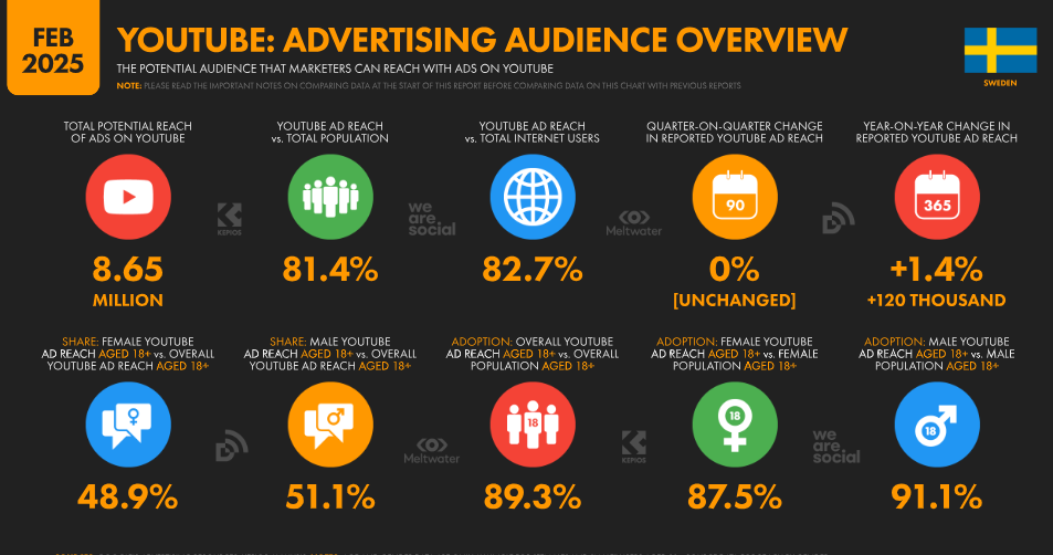 This widespread adoption is supported by nearly universal online penetration at 98.3%. So almost everyone in Sweden has access to these digital spaces.