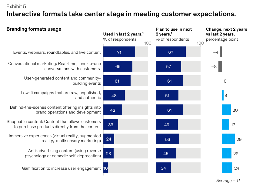 And you can choose from many formats, like events, UGC, conversational real-time marketing, shoppable content, etc. Just look: