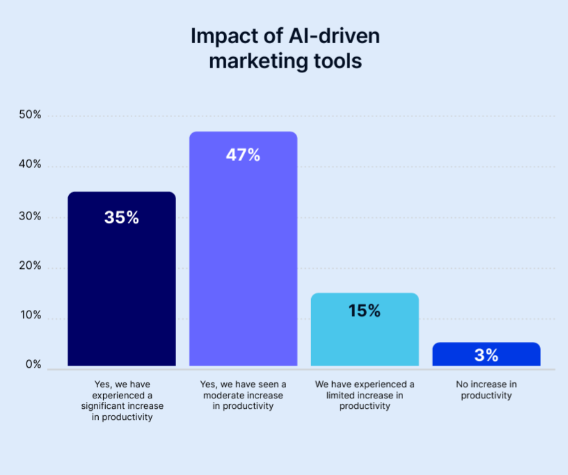 And for many, the payoff is real. Around 82% of marketers say AI tools have improved productivity, even if that improvement often feels gradual rather than dramatic.
