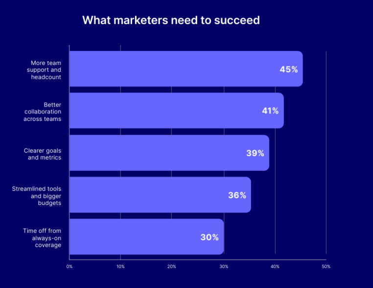 What marketers say they need is consistent. More support. Better collaboration. Clearer goals. Smarter tools. Time to step back without fear of missing something important.