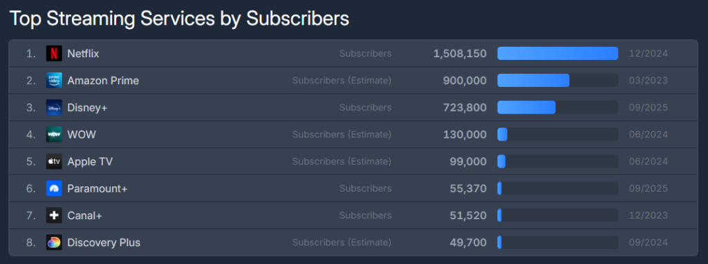 Apple TV+ remains smaller in scale but steady across Germany, Austria, and Switzerland. Subscriber numbers are modest compared to Netflix or Prime Video, but engagement is often strong.