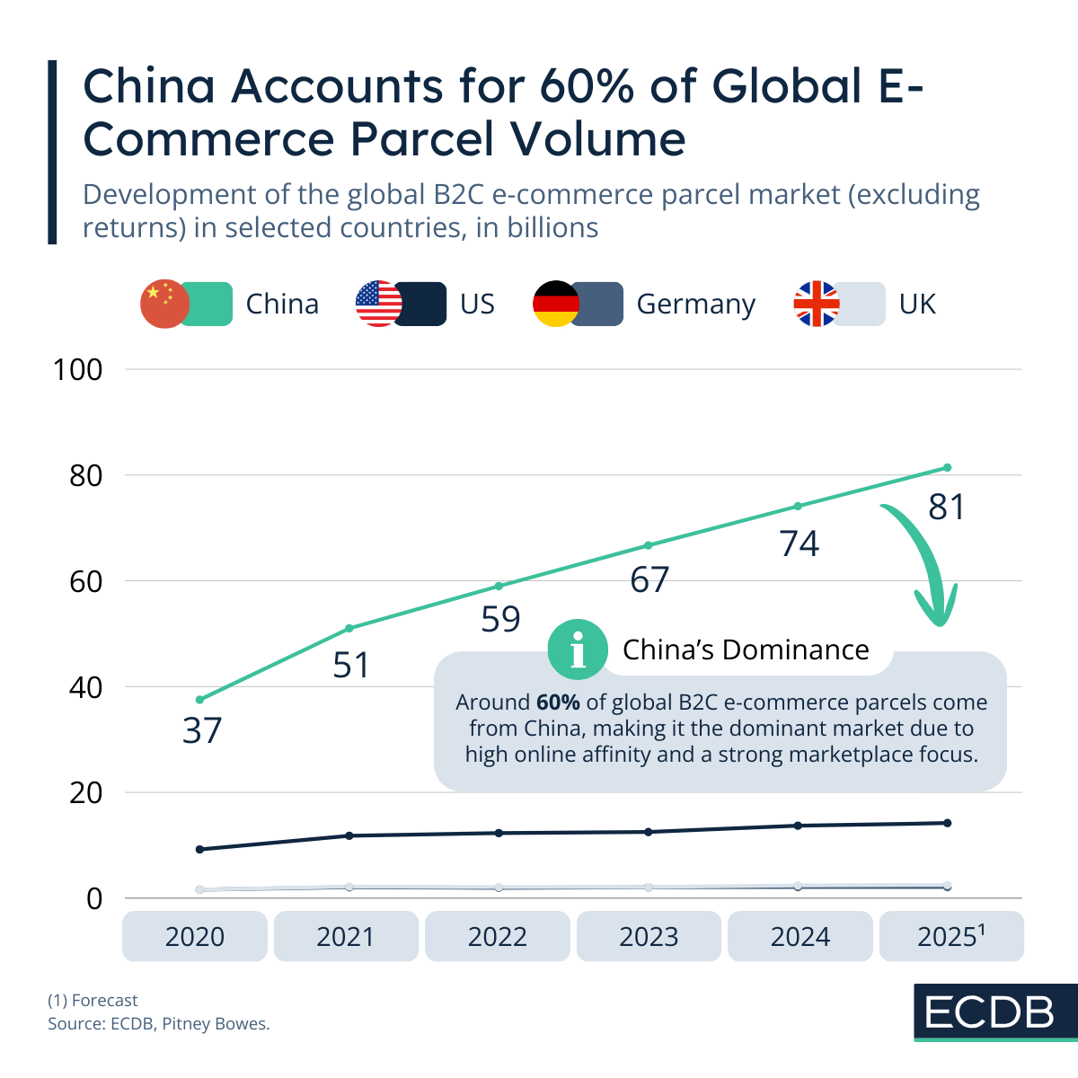 According to ECDB, the global parcel market is growing with e-commerce expansion, led by China, followed by the US and Europe, amid differing carrier competition landscapes. (Ad)