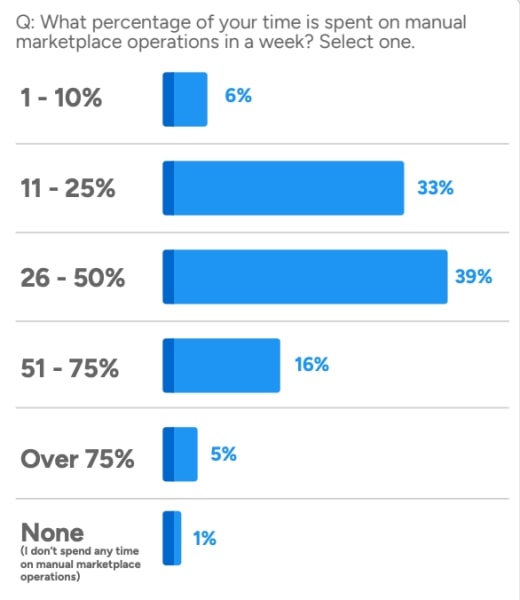 Over one in five sellers spends half the week on these tasks. At that point marketplace management almost becomes the entire role.