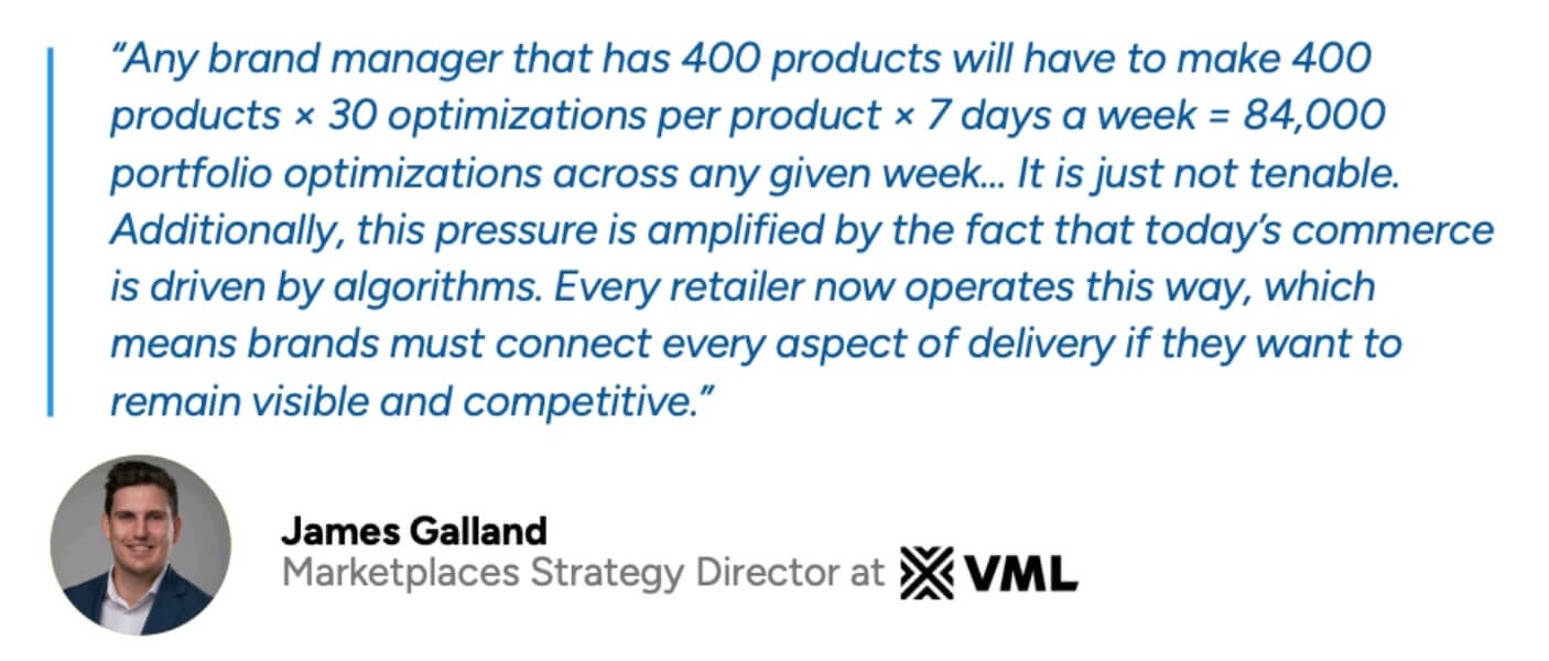 Spreadsheets cannot support this volume. Each update requires a check and confirmation that it reached the correct marketplace. At scale even a short delay creates a backlog that teams cannot clear. Work shifts from improving performance to maintaining baseline accuracy.