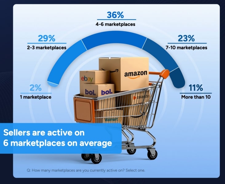 According to the Marketplace Seller Trends Report 2025 by ChannelEngine, sellers are now active on six marketplaces on average, and only 2% sell on a single marketplace. Just a few years ago, most brands considered Amazon their only viable channel. Today, diversification is simply a survival mission.