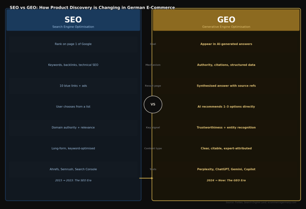 For the past decade, the rule was simple: if you want to be found online, optimise for Google. Understand how its algorithm works, earn the right backlinks, target the right keywords, and you earn your place on page one. Millions of German e-commerce businesses built their entire digital acquisition strategy on exactly this premise.